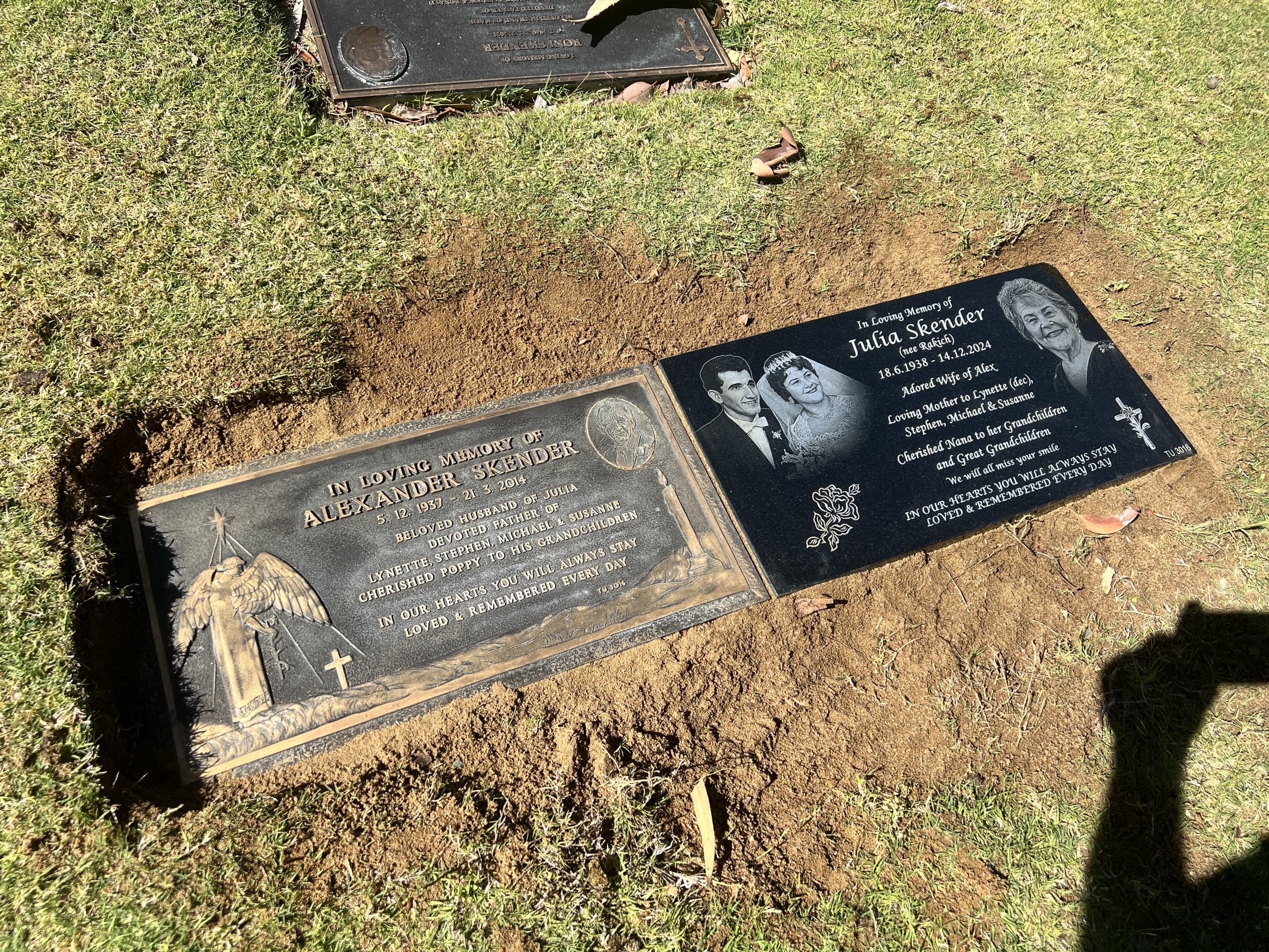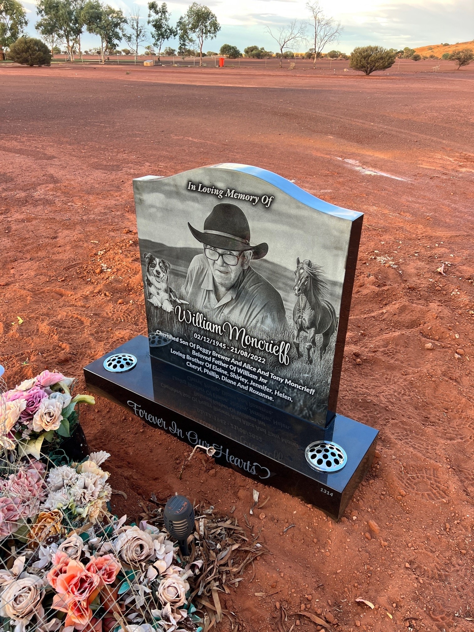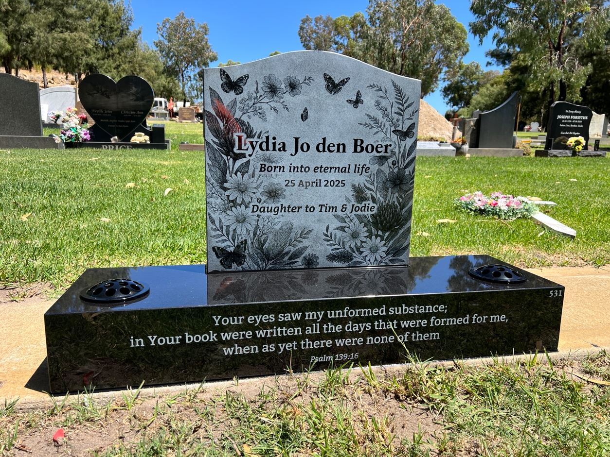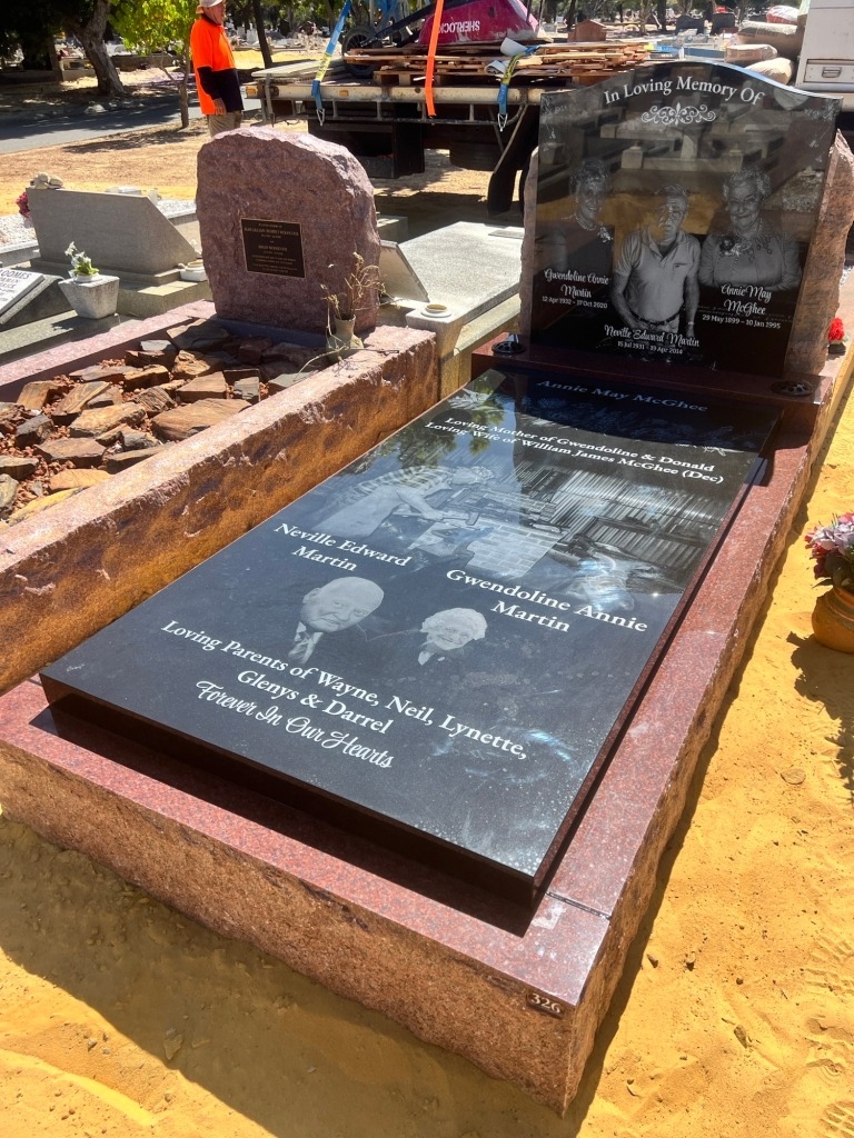 You can design a memorial using similar materials for its headstone and slab or combine two types like having a light-transmitting headstone on a stainless steel memorial or a coloured granite headstone on a granite memorial.