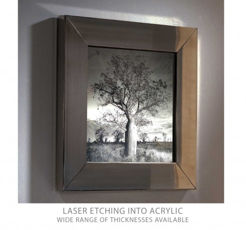 Acrylic Panels with laser-etched inscriptions, patterns, scenes, photos and motifs. Custom designs and shop fit outs. More options available. Perfect for Photographs, Artworks, and In-Store Shop Signage.
