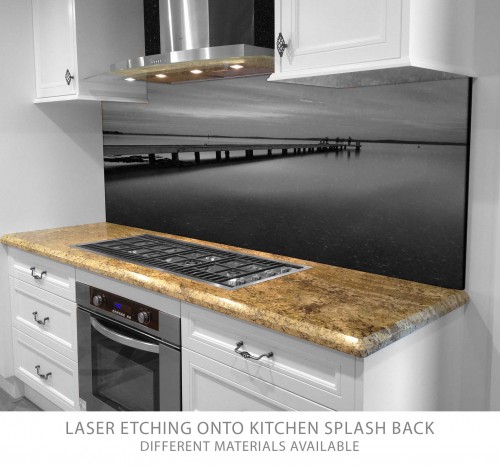 Splash back panels with laser-etching designs. Various materials available. Great for Kitchen features, pool fences, Bathrooms and more.