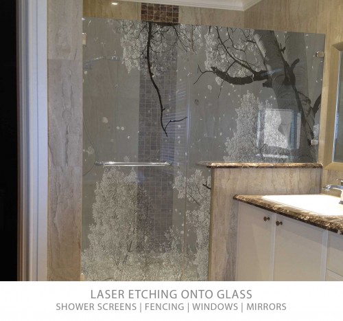 Glass Panels and Screens with laser-etched features. Many possible applications including kitchen splashbacks, shower screens, pool fences, railings/balustrading, and room dividers. Make a true statement in glass.